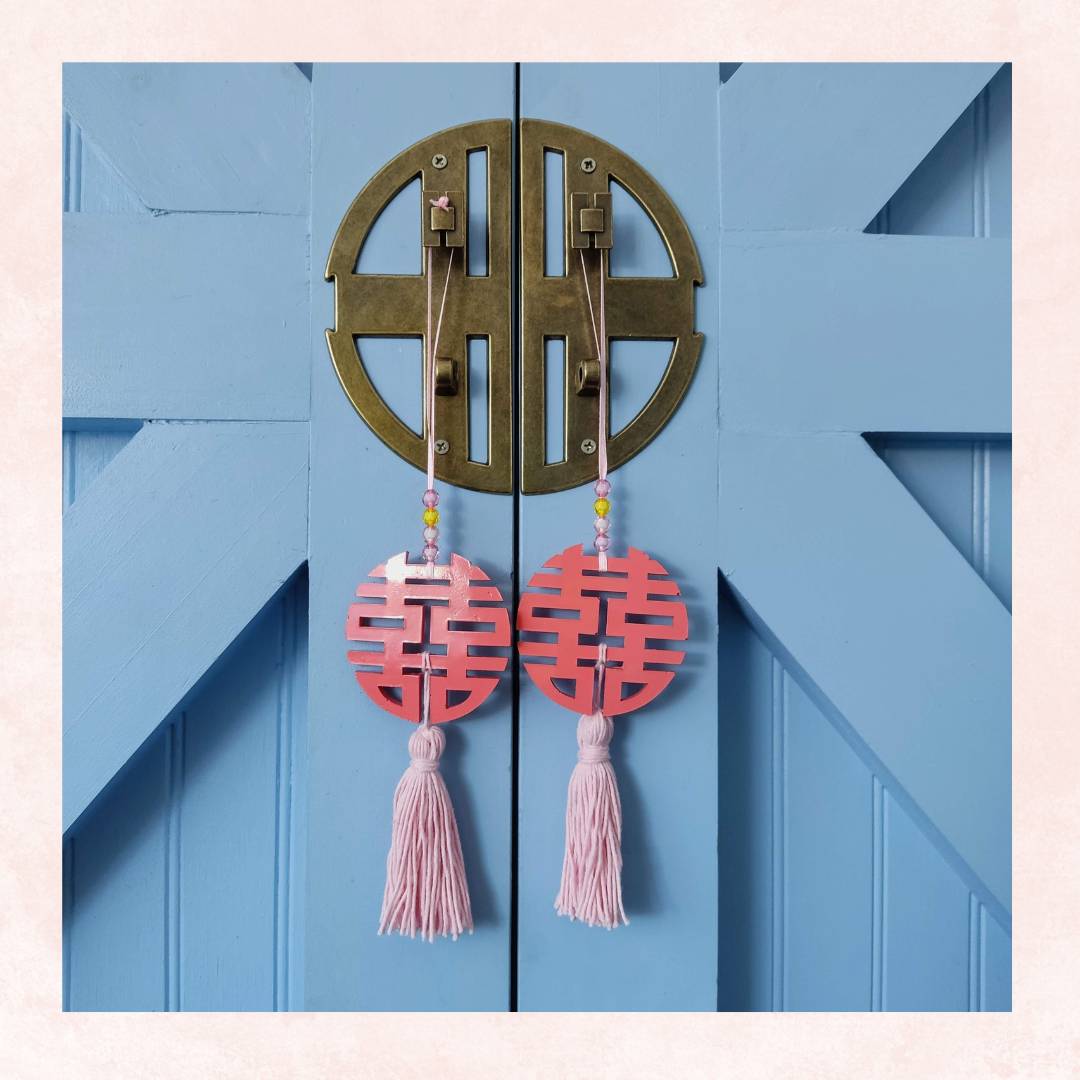 El símbolo de doble felicidad suele ser utilizado en la cultura china como un talismán para atraer la buena suerte, especialmente en asuntos relacionados con el amor y el matrimonio. También se utiliza comúnmente en el Feng Shui como una cura de amor y un mejorador de la suerte romántica.