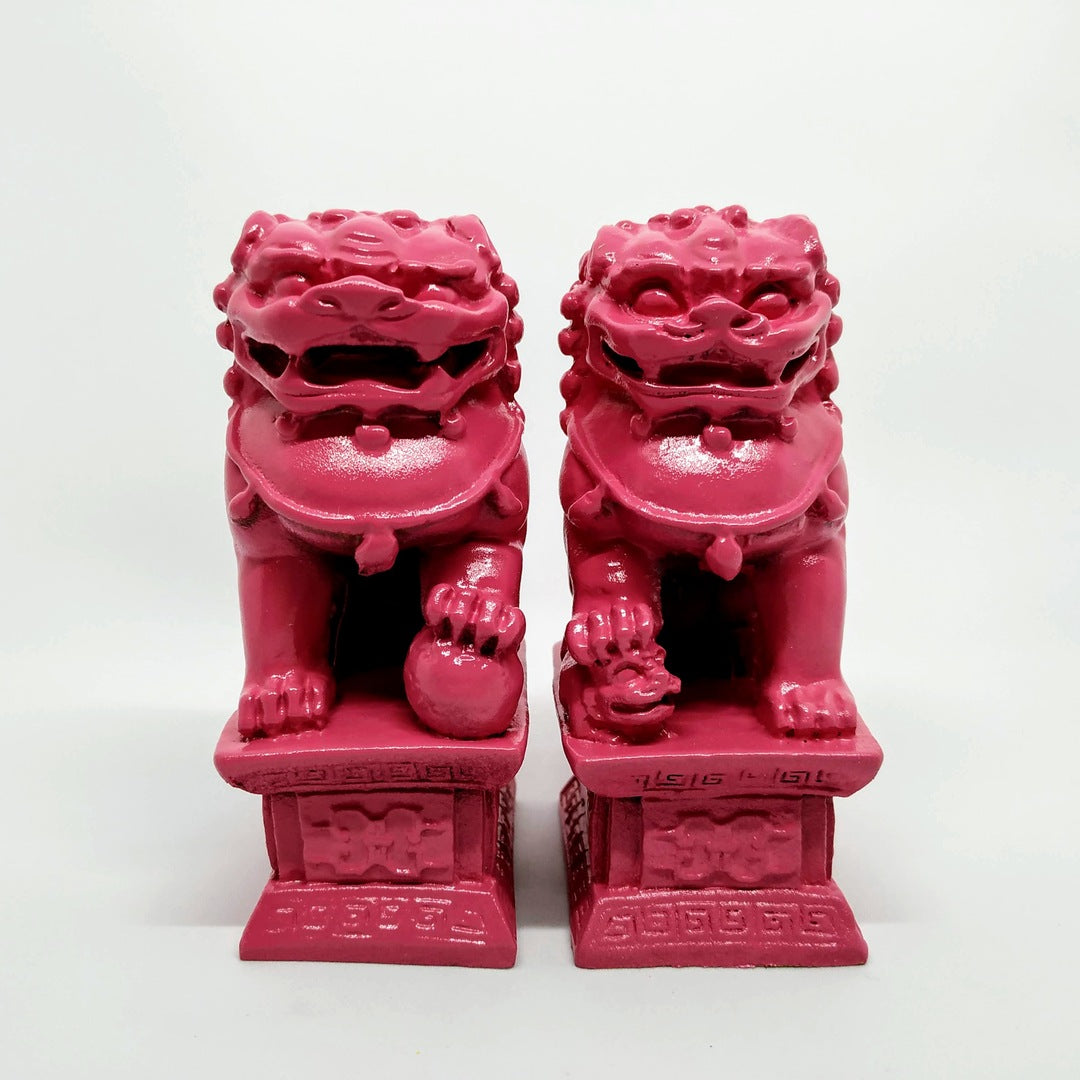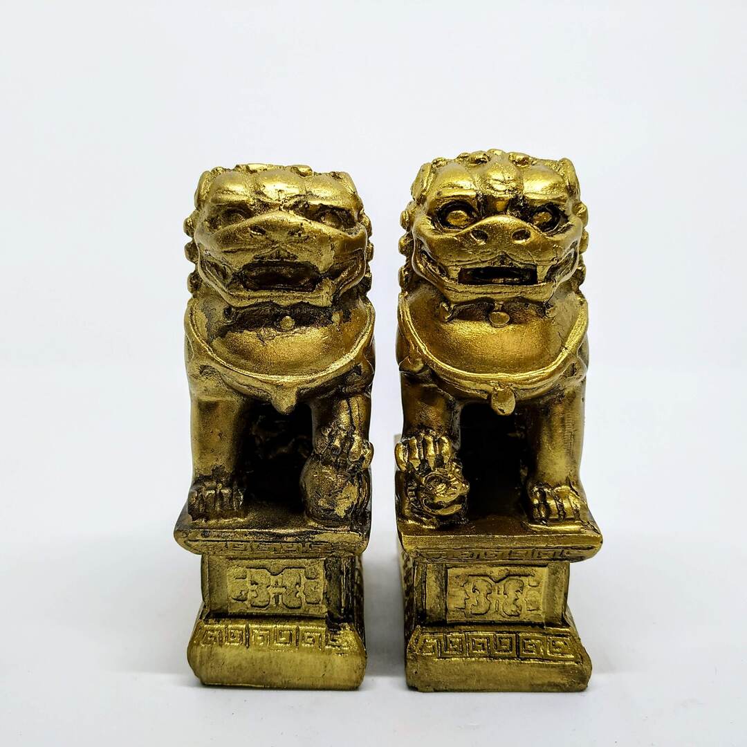 Este par de protectores son una pareja de animales que representan el yin y el yang; en donde la hembra representa el yin la cual lleva debajo de su pata izquierda una pequeña cría que simboliza lo femenino y adicional a ello se dice que es la encargada de proveer protección en el interior de su hogar o entorno laboral. Y El macho yang lleva bajo su pata derecha la imagen del globo terráqueo que simboliza al hombre protegiendo el mundo.